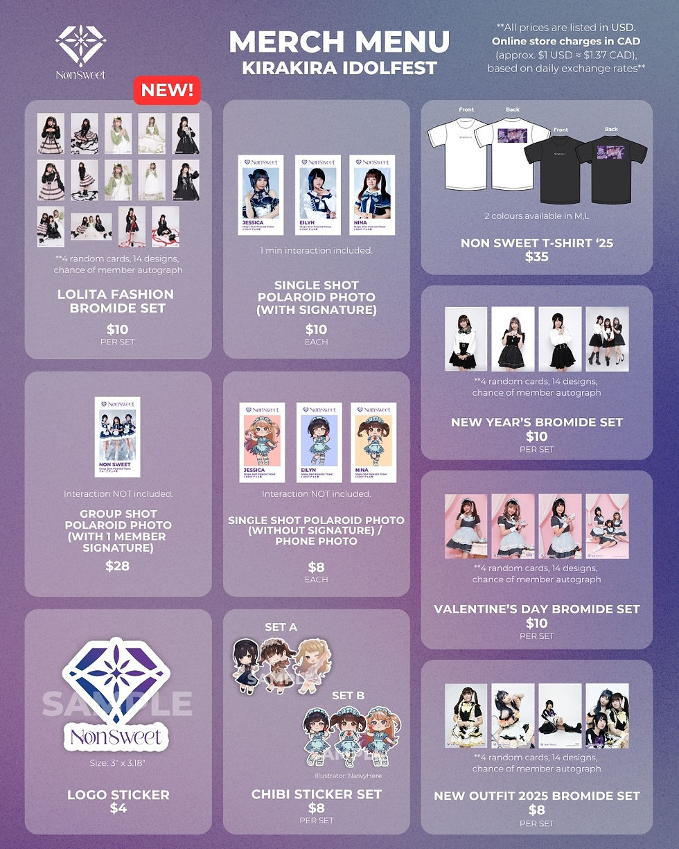 💎 All prices listed on the merch menu are in USD. Purchases through our online store will be charged in CAD based on the daily exchange rate (approx. $1 USD ≈ $1.37 CAD)